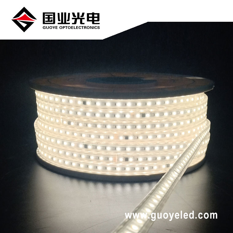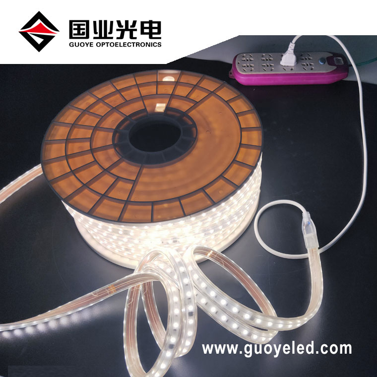 Guoye Optoelectronics je veleprodajna tovarna in dobavitelj visokonapetostnih LED trakov. Visokonapetostni LED trak običajno poganja neposredno gospodinjska napetost, kot je AC110-127V ali AC220V-240V. Lahko se konfigurira z napajalnim kablom EU/US/AU/UK glede na uporabljeno regijo. Lahko se razširi na 20 metrov, 50 metrov ali 100 metrov do razsvetljave ali razreže na krajše dolžine ali različne manjše dolžine. Stabilna kakovost, enotna svetla barva, 2 leti garancije.