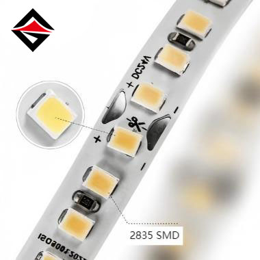 2835 žarnice ima visoko svetlost, moč ene same svetilke pa lahko doseže 0,2 W ali 0,5 W, kar lahko zagotovi svetel in enakomeren svetlobni učinek. Njegov svetlobni učinek lahko doseže 100 lm/w ali več, svetlejši od tradicionalnega 3528 svetlobnega traku (svetlobni učinek je približno 90 lm/w).